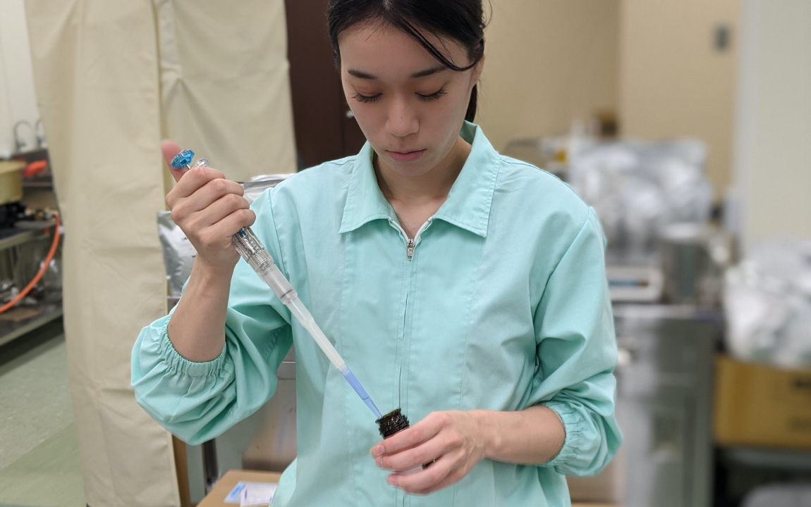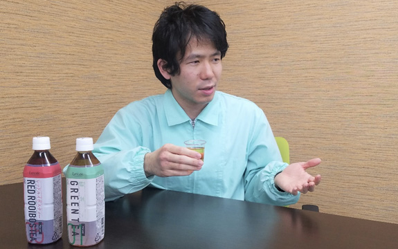 配合検討という製品の味決めのベースとなる原料配合検討を行い、お客様への提案を実施致します。配合確定後は、賞味期限設定のための品質検証や工場への落とし込み等の業務があります。担当案件は、茶系飲料を中心に果汁飲料、機能性飲料などです。